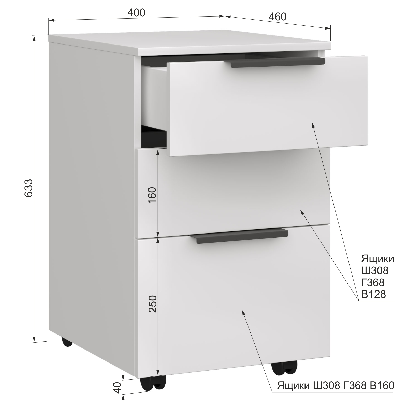 Количество выдвижных ящиков 3